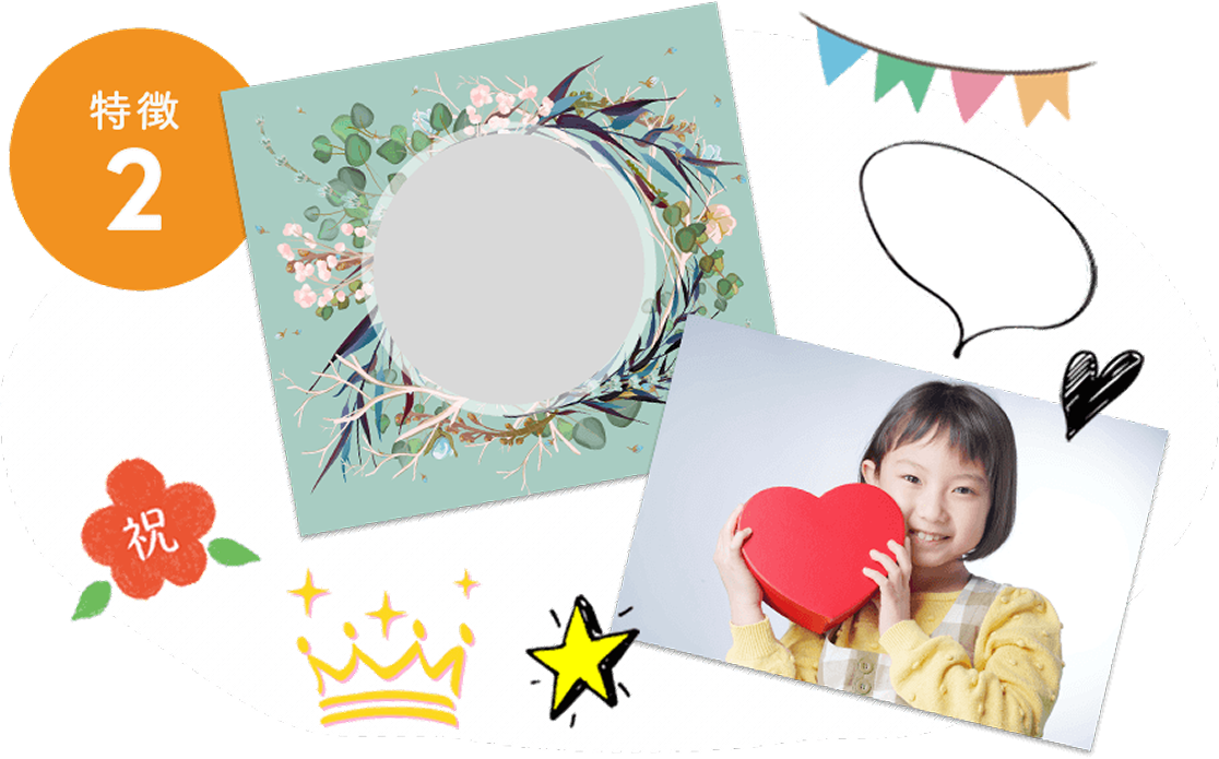 お好きなフレーム、写真、スタンプを使って、あなただけのオリジナルラベルを作成できます!